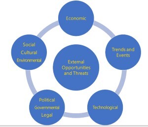What are the types of opportunities and threats in the external environment?