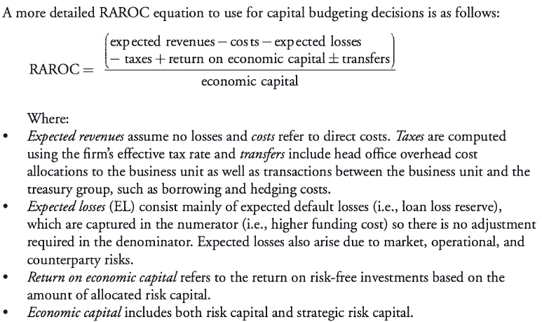 A more detailed RAROC equation to use for capital budgeting decisions is as follows: