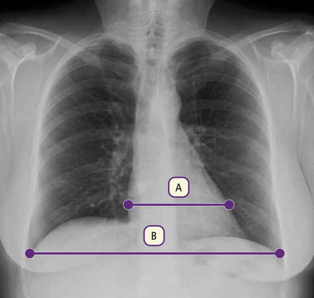 El índice cardiotorácico (ICT) es la relación que existe entre el diámetro transverso del corazón y el diámetro transverso del tórax. Para calcularlo mide la anchura horizontal del corazón y divídela entre el diámetro interno más ancho del tórax. Un índice cardiotorácico normal debe ser inferior a 0,5.