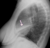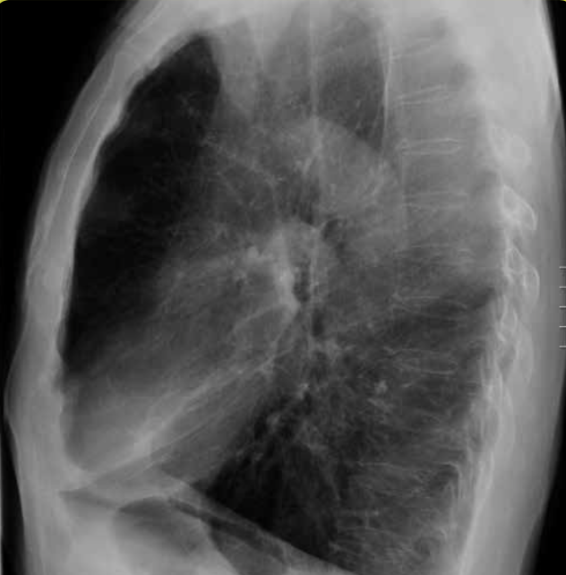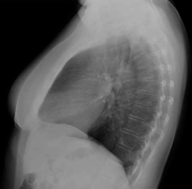 Observa y nombra la silueta de las diferentes estructuras que forman el mediastino en radiografía lateral.