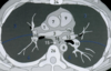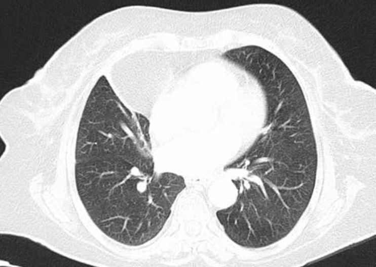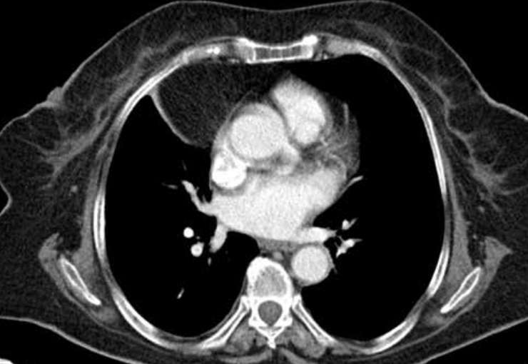 Se ven mejor la vía aérea, vasos pulmonares y cisuras, pero todas las estructuras mediastínicas aparecen de un tono gris demasiado similar.