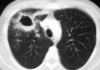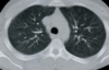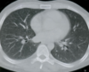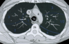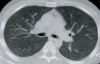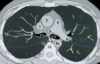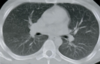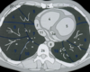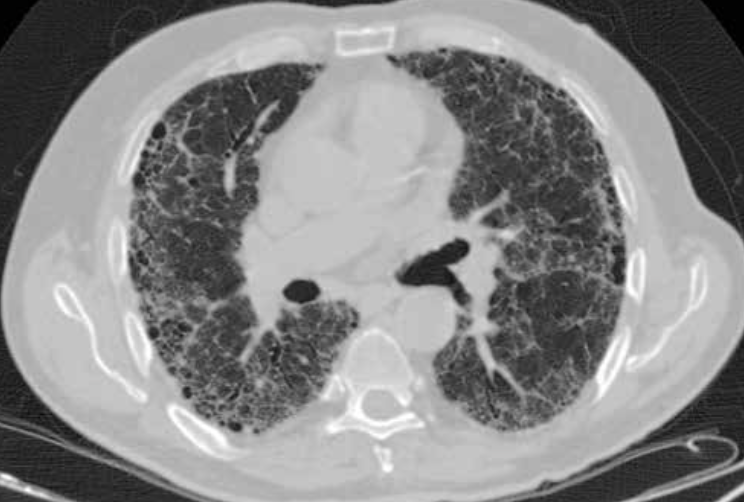 Imagen de TC de alta resolución que muestra fibrosis pulmonar.