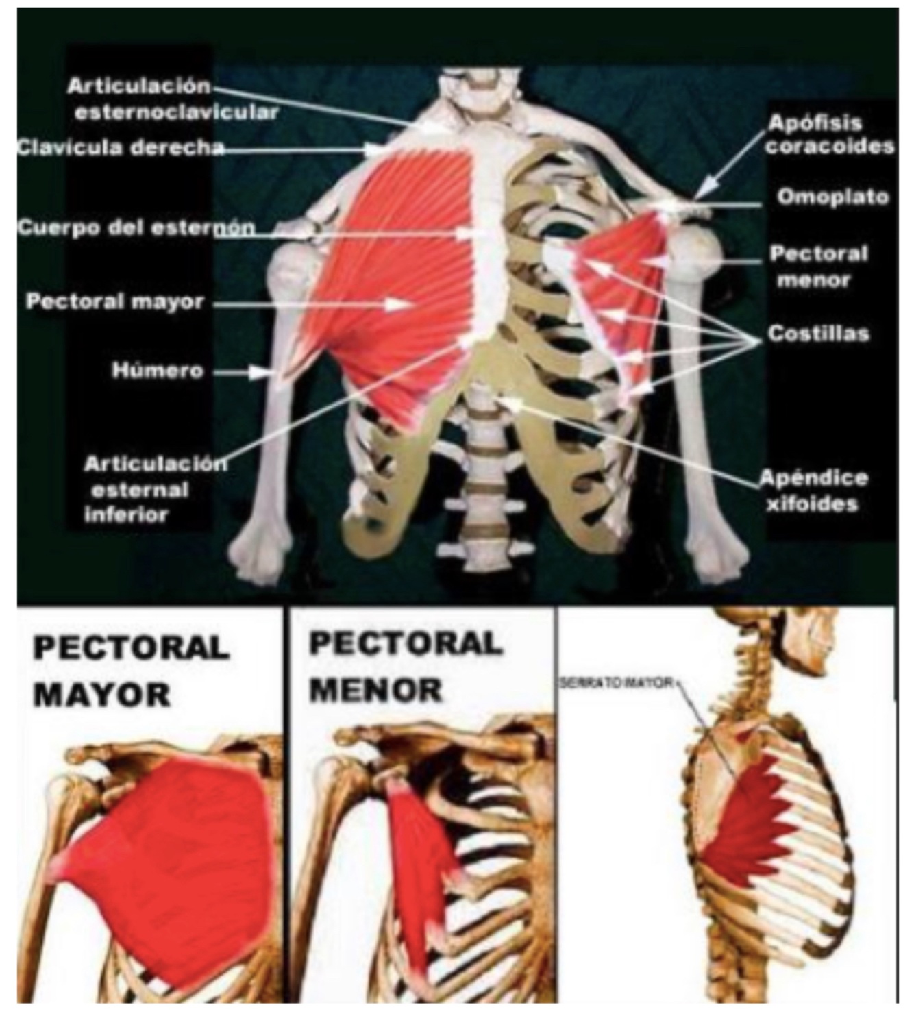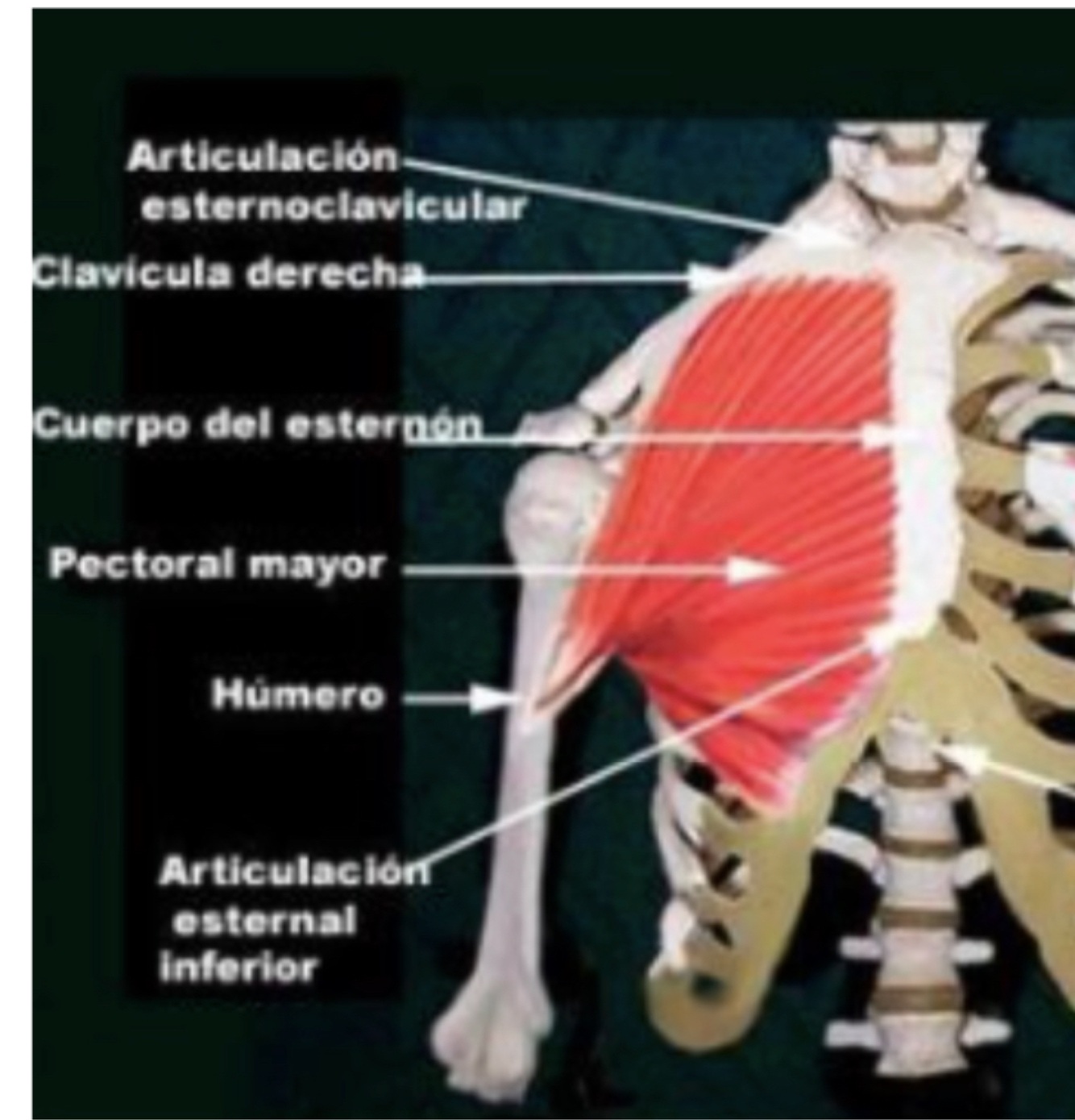 Tiene inserciones costales, esternales y clavículares y todas estás fibras de manera centripeta se van hacía el húmero.