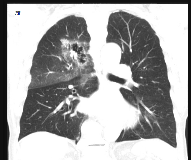 Consolidação com cavitação em lobo superior direito