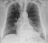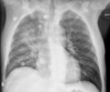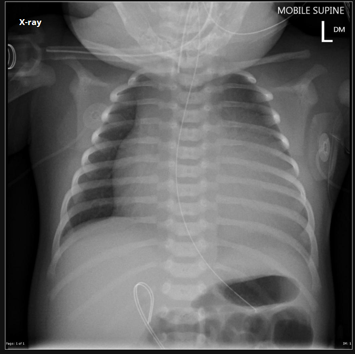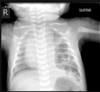 Cardiomegalia massiva em um neonato com pulmão normal (sem edema alveolar ou intersticial, sem derrame pleural)