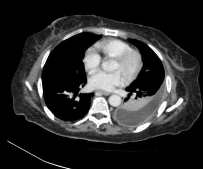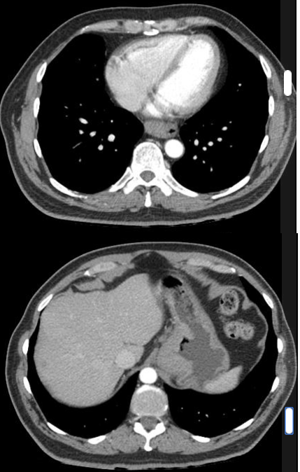 CT: Espessamento circunferencial ou excêntrico da parede > 5 mm; densificação da gordura periesofágica; deposição de líquido e debris no esôfago proximal dilatado;