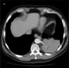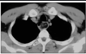 CT: Lesão de densidade de partes moles, pedunculada no terço proximal do esôfago; pode conter gordura em seu interior (hipodenso).
