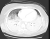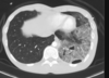 Consolidação em lobo superior direito com áreas de cavitação
