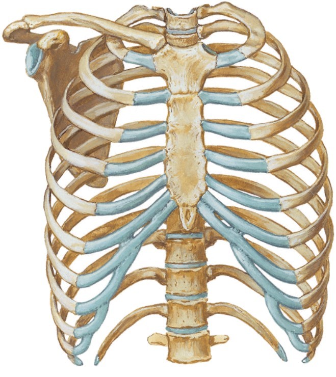 Localize as cartilagens costais: