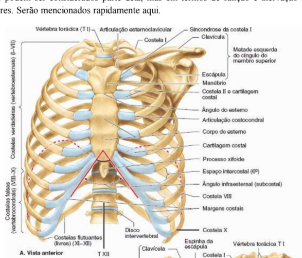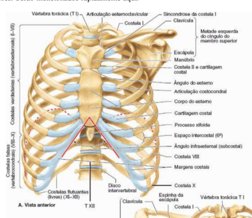 Costelas verdadeiras: I a VII- fixam no esterno pela propria cartilagem