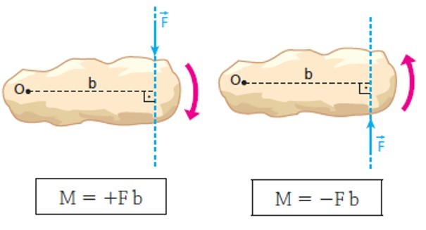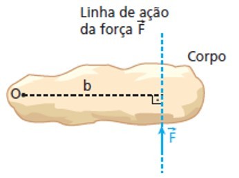Produto da intensidade da força com o tamanho do braço b (distância da reta que contém o vetor força ao ponto O)