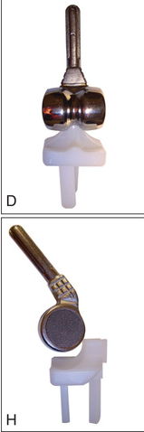 - UHMW polyethylene conican disc press fitted over titanium cylinder and screwed into capitulum