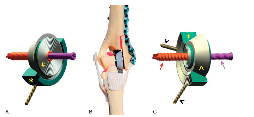 - Primary fixation with large transcondylar screw and 2 smaller ulnar screws