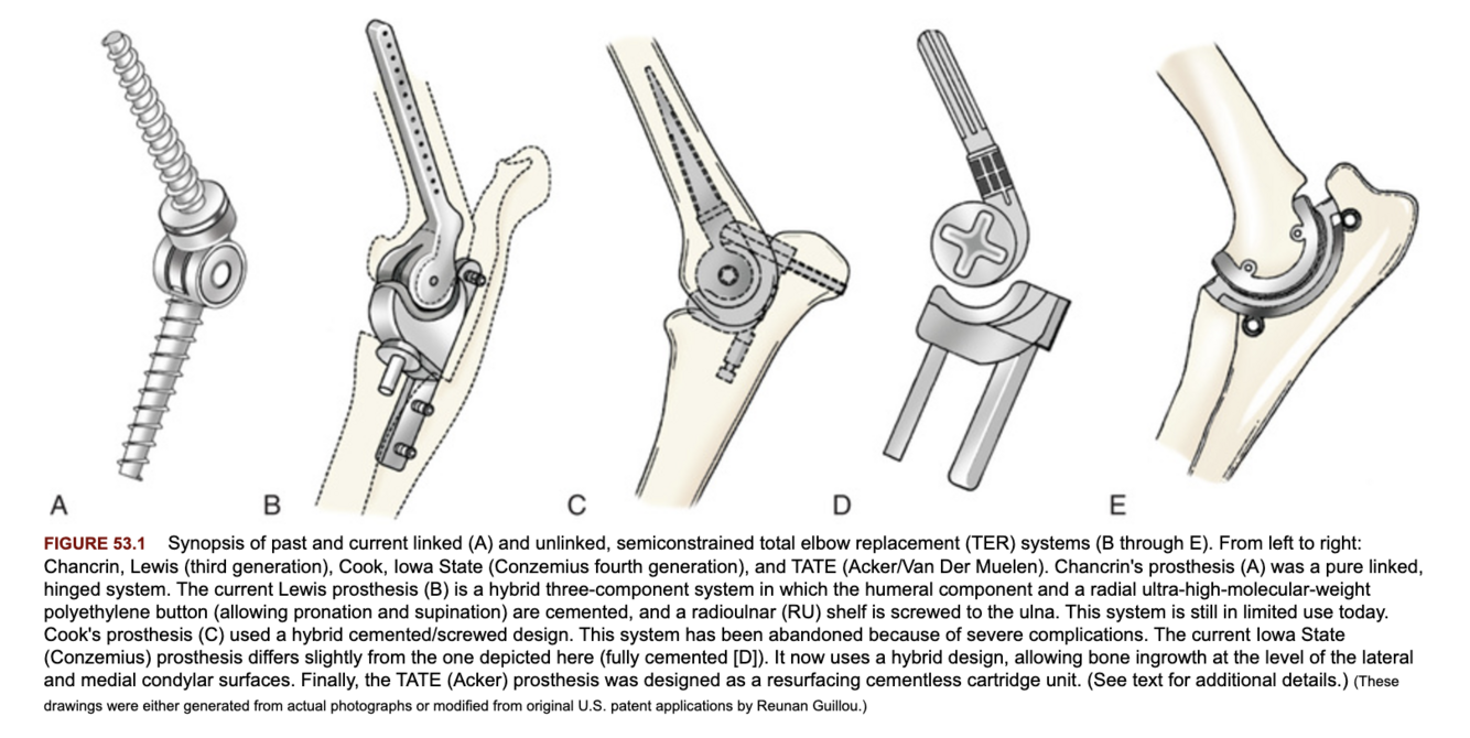 Are current elbow prostheses commercially available for total elbow replacement linked or unlinked?