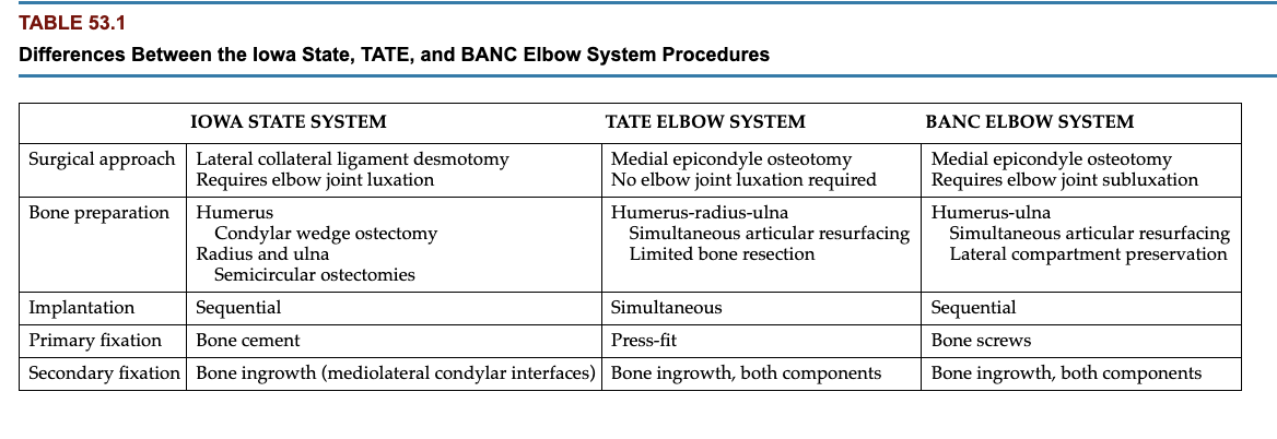 3) BANC: Osteotomy of the medial humeral epicondyle. Requires subluxation.