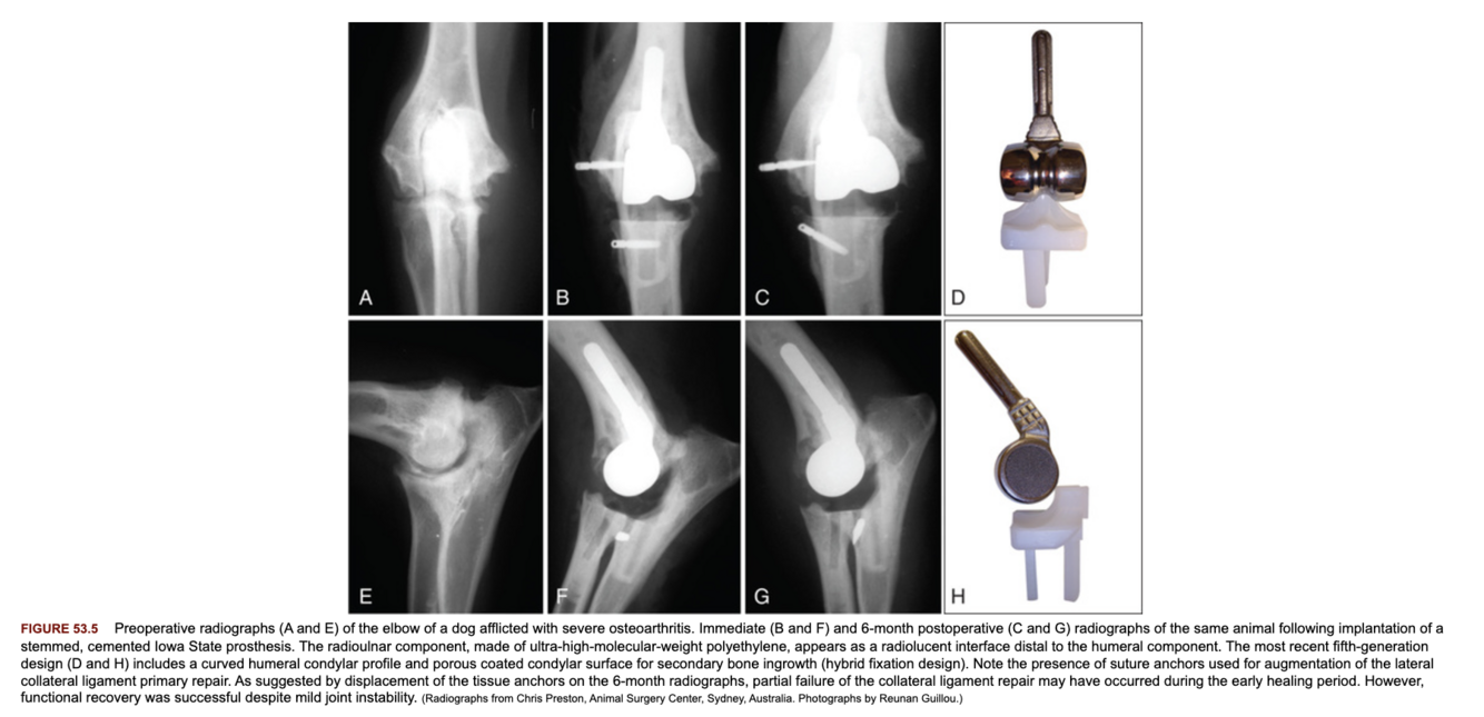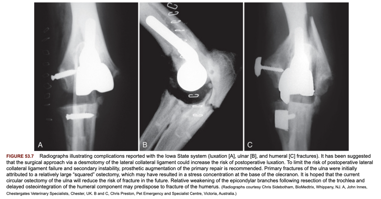 1) Iowa state: lateral collateral ligament desmotomy. Elbow joint fully luxated.