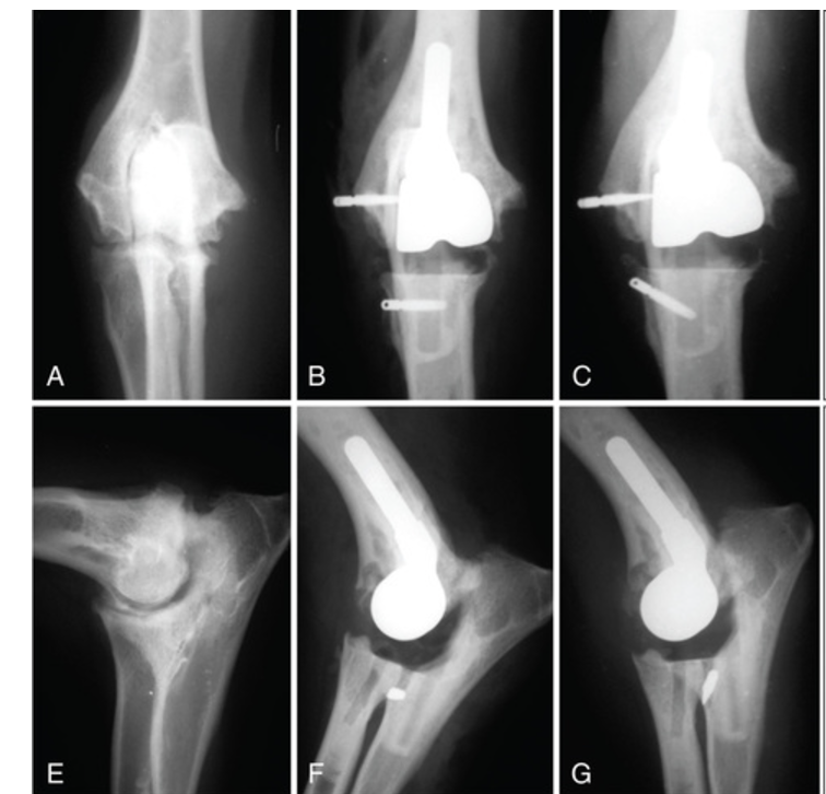 Older patients with a clearly decreased quality of life due to severe intractable osteoarthritis of the elbow.