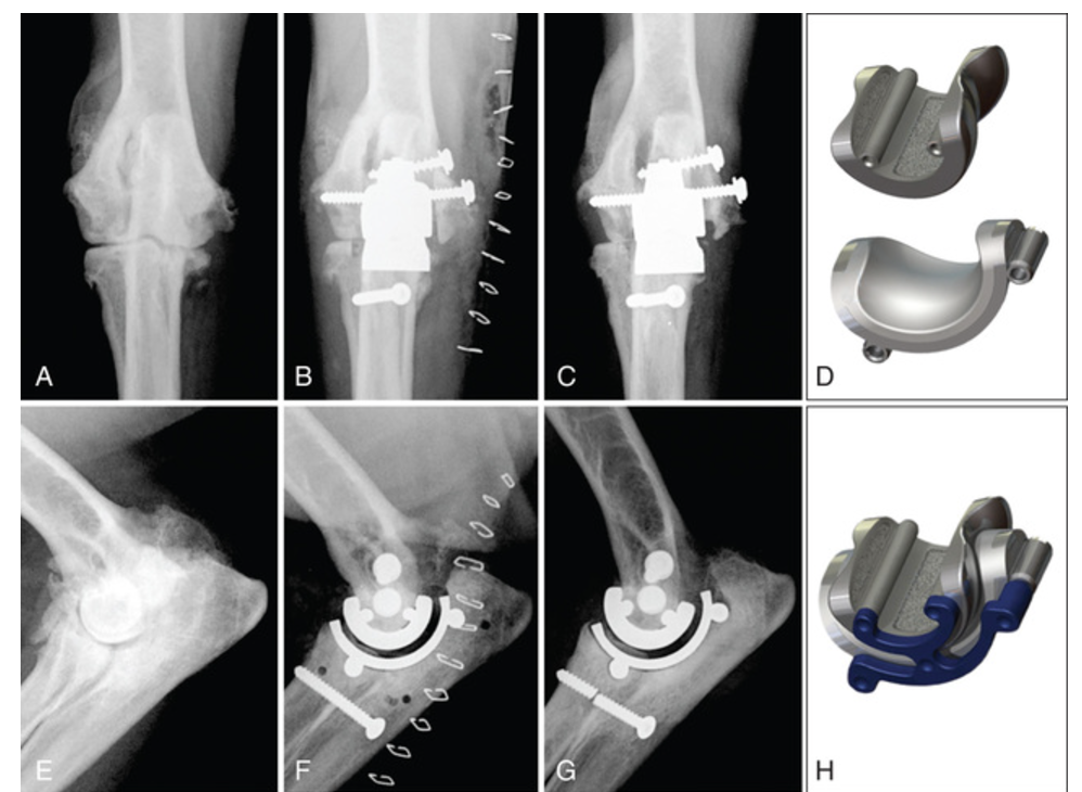 Larger transcondylar and medial epicondylar screw to prevent failure, and electron beam melting of the titanium components to improve osseointegration.