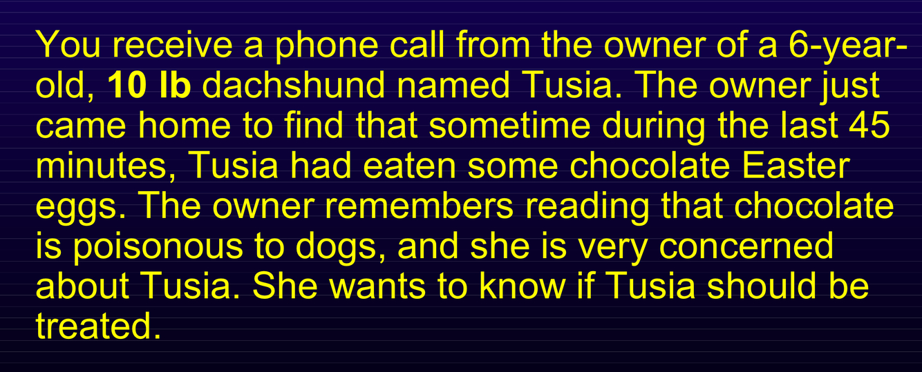 Tusia’s owner believes she ate 10-20 eggs. How much chocolate did Tusia ingest? Theobromine and caffeine?