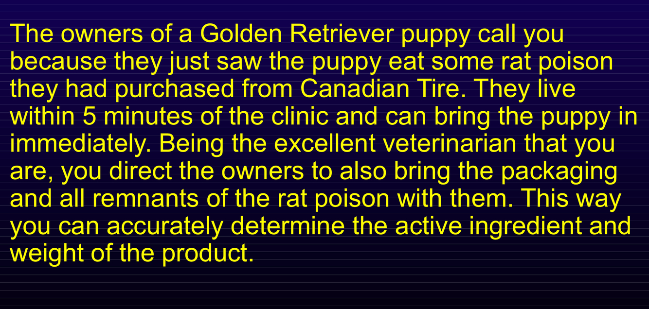 exposure is usually not witnessed - animal presents with sudden illness and other possibilities must be ruled out
