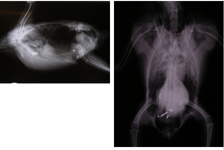 Anaesthesia is performed to permit radiography and venous sampling for haematology and biochemistry: Blood sampling (maximum volume approx 2mls (0.5% of body weight))