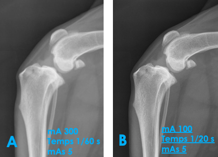 À mAs équivalent : temps augm, mA diminue => permet d’avoir une meilleure netteté