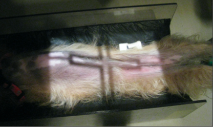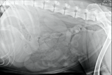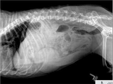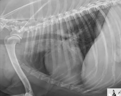 Anamnèse : Elkhound norvégien, femelle, 16 ans, présentée pour faiblesse et ataxie des membres pelviens.