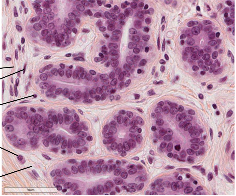 lame glande mammaire HES contenant collagène de type 1 lache (contient un qté égale de susbt fondamentale, cell et fibre)
