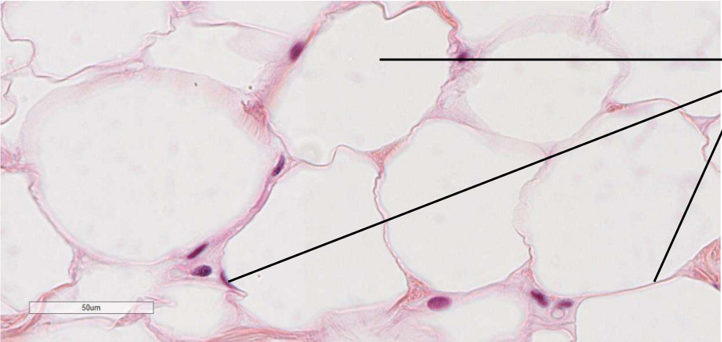 adipocytes (cellules qui contiennent des lipides avec noyau écrasé)