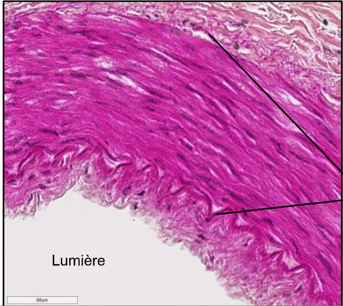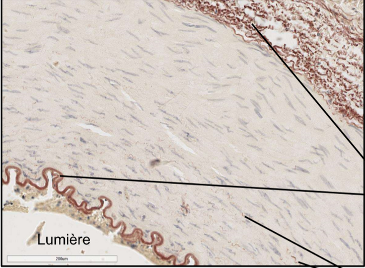 Avec le HES, la coloration des fibres musculaires cache les fibres élastiques