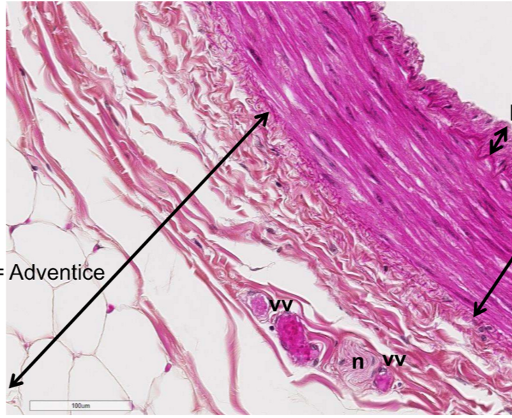 Adventice qui est composée de fibre de collagène, vasovasorum, tissus adipeux et nerfs