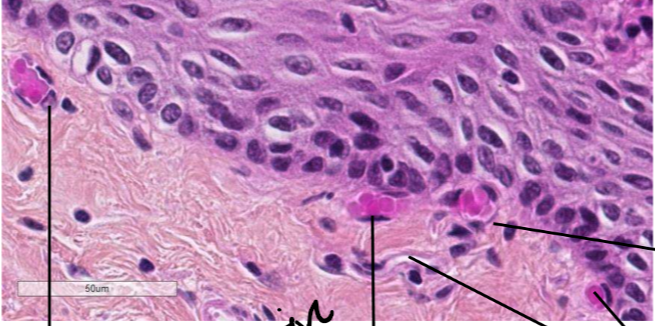 couche basale: membrane basale avec des cellules souches qui font de la division mitotique, on y retrouve aussi les melanocytes