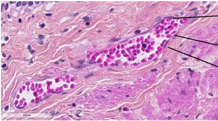 veine (on le sait parce que la media est mince et la limitante elastique est peu visible) aussi al lumière est grande et irrégulière comparé aux artères