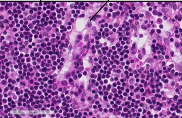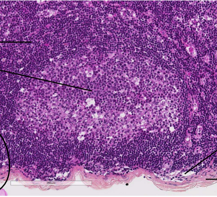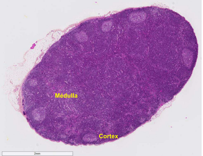 On est dans quelle partie du ganglion lymphatique (cortex ou medulla?) et identifie les fleches