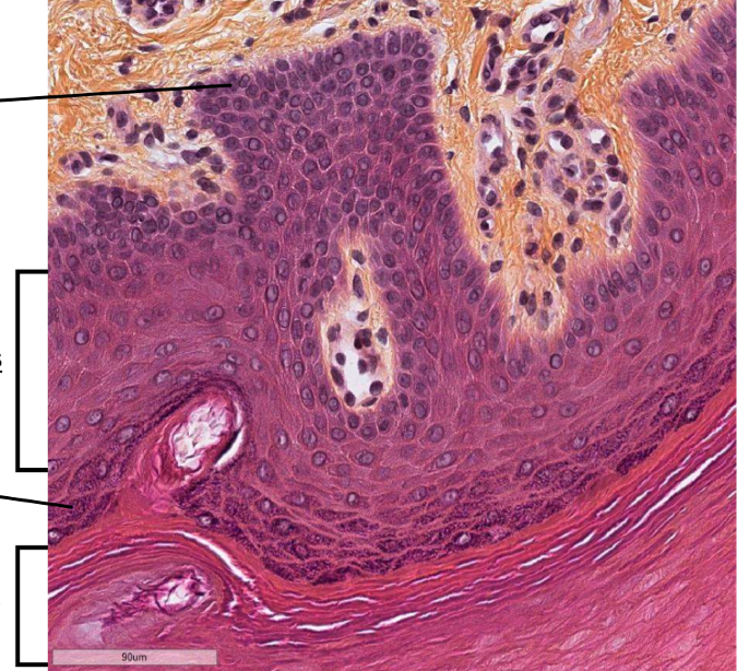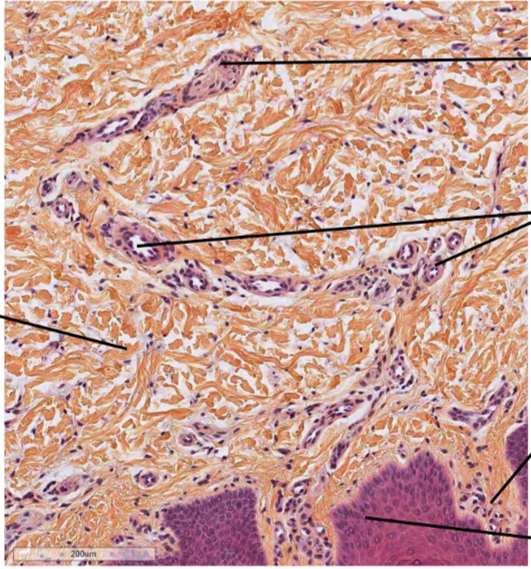 Lame de peau acrale de l’orteil, on observe le derme (on voit a cause du collagène)