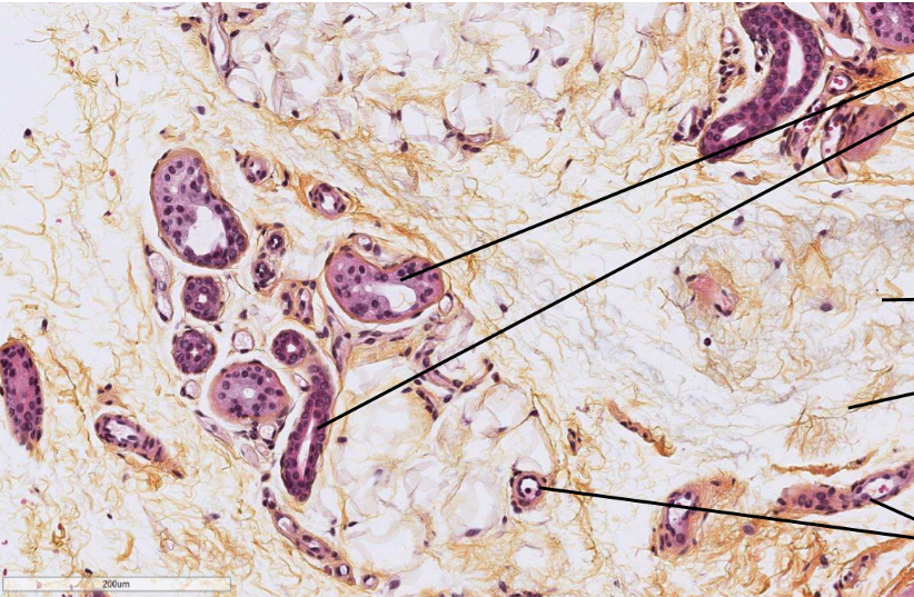 celle qui est pointée= cellule réticulé (elles soutiennent le canal)