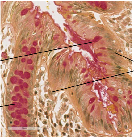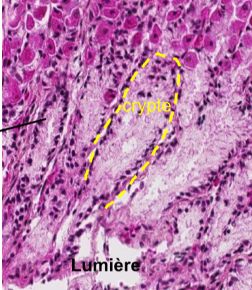carré droit: cell principales qui produisent la pepsine (plus loin des cr^tes)