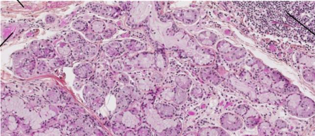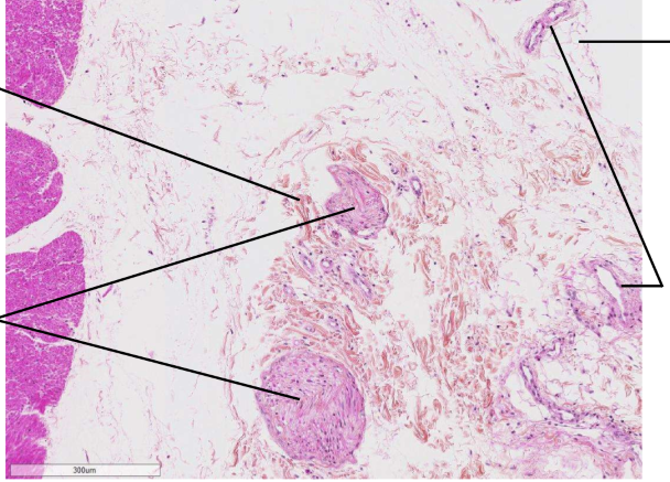 fleches: tissus conjonctif, vs, amas lymphocytaire