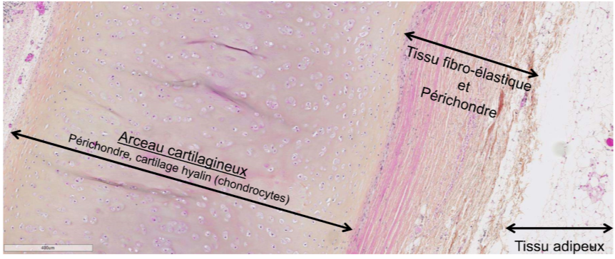 lame de la trachée en HES ici on observe la sous-muqueuse