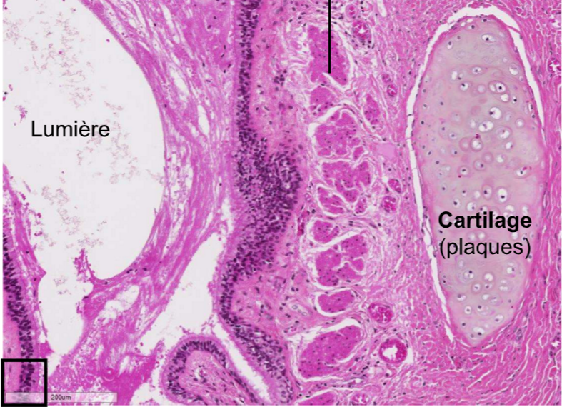 à droite, c’est des bronchioles qu’on peut différencier parceque c’est cilié et pas de cartilage hyalin