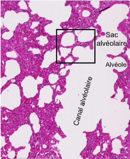 dans quelle structure plus importante du poumon on retrouve ce qui est sur cette lame et donne également les parties en noir