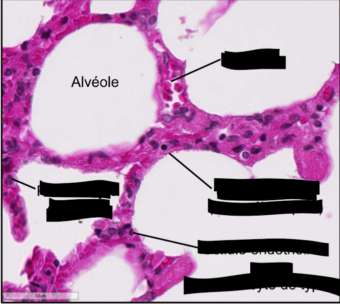 cellules endothéliales ou pneumocytes de type 1 (plus petites)