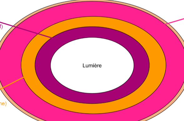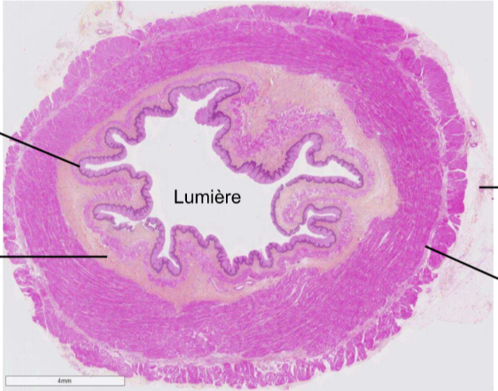 vers l’ext: muqueuse, sous muqueuse, musculeuse, adventice