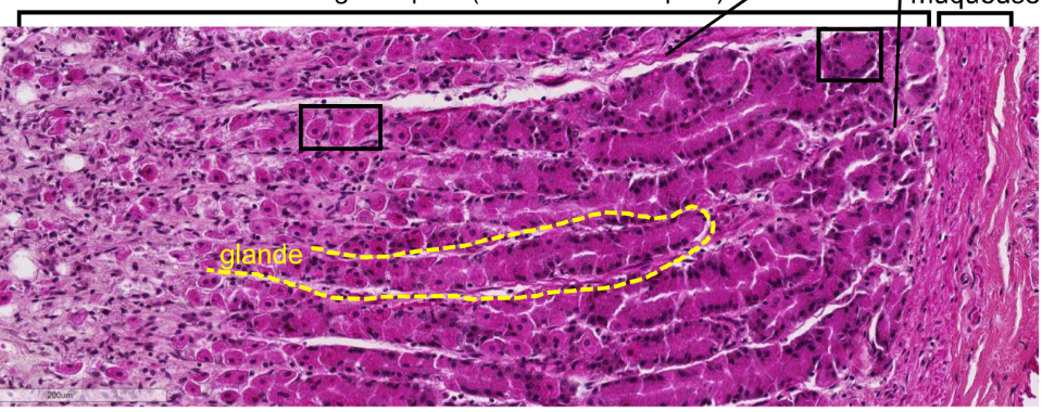 carré gauche: cell pariétales qui produisent le HCL (plus proche des crètes )