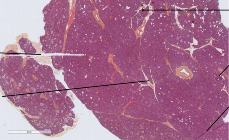 Nomme les artéfacts de cette lame du pancréas et la coloration