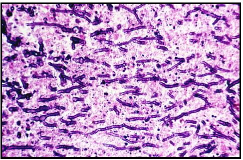 Il s’agit d’un fort grossissement de l’agent causal, le champignon