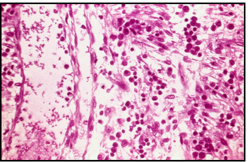 Bronchopneumonie Certains alvéoles contiennent du pus