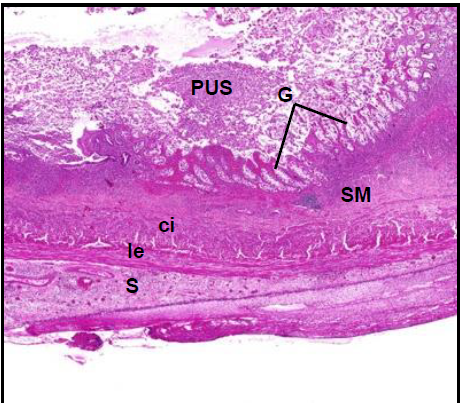 On trouve une section transversale et longitudinale d’un appendice montrant