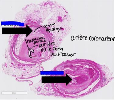 à gauche : atheroclérose parce quon voit les cristaux lipidiques