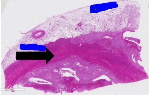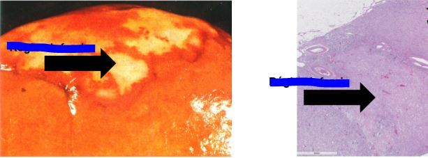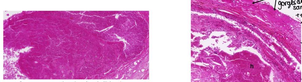 flèche=nécrose (très rose)
